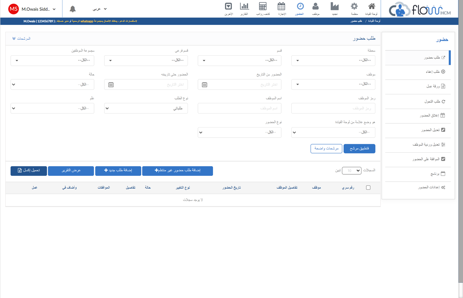 - لوحة المعلومات للموارد البشرية أو الإدارة للحضور.