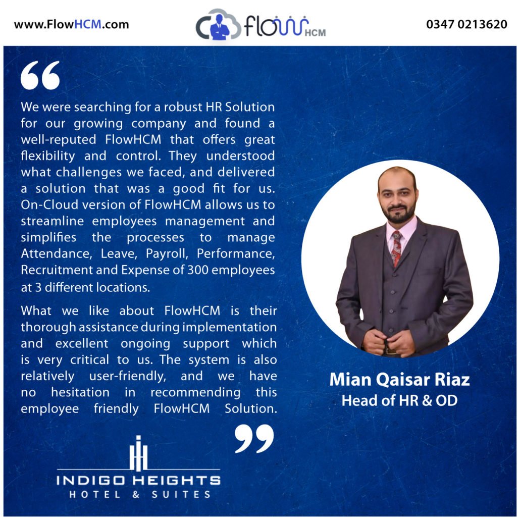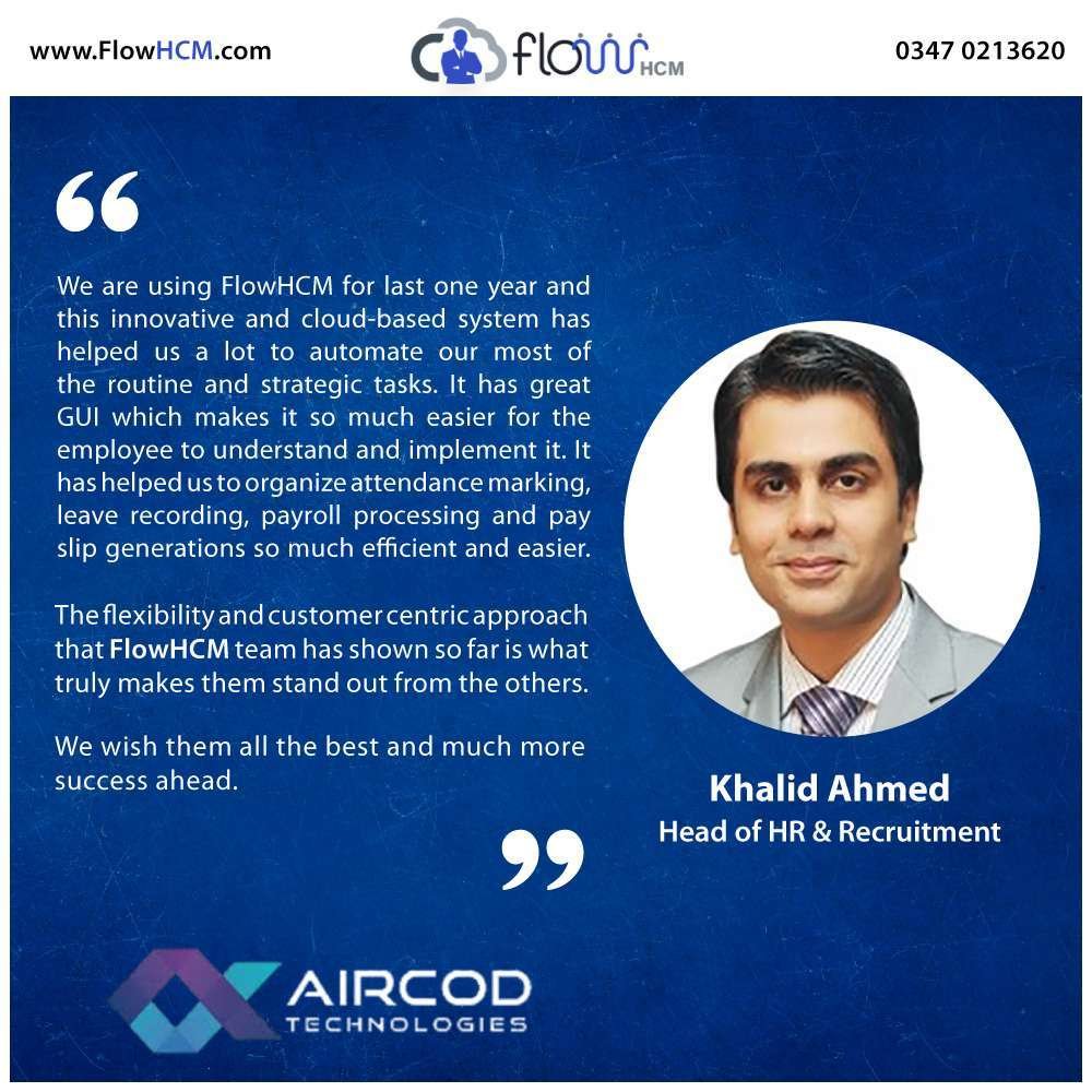 لقد كان FlowHCM المتقدم والقائم على السحابة هو الأكثر فائدة لنا من أجل تقليل الوقت والتكلفة التي ينطوي عليها أداء المهام الإدارية وزيادة التركيز على الموارد البشرية الإستراتيجية بسبب برنامج الموارد البشرية هذا الفعال من حيث التكلفة، أصبح إدارة الحضور والانصراف والإجازة وكشوف المرتبات لأكثر من ١٢٠٠ موظف بشكل فعال في ٤ مواقع مختلفة مُريحا و سهلاً. إنها أداة سهلة الاستخدام وقابلة للتخصيص بدرجة كبيرة، وقد أضافت قيمة هائلة إلى مواردنا البشرية ومنظمتنا. الفريق محترف للغاية وكان كل شيء تحت السيطرة أثناء التنفيذ. نحن عميل راضٍ عن FlowHCM ونفضل استخدام وحداتهم الأخرى دون تردد. إنه أفضل نظام موارد بشرية محلي بقيمة المال وقادر على تلبية احتياجاتنا المتزايدة باستمرار. نحن نقدر فريق FlowHCM لالتزامهم ودعمهم ونتطلع إلى مواصلة علاقتنا التجارية معهم. نهج المرونة والتركيز على العملاء الذي أظهره فريق FlowHCM حتى الآن هو ما يجعلهم يبرزون حقًا عن الآخرين. نتمنى لهم كل التوفيق والمزيد من النجاح في المستقبل.